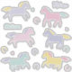 Cute pastel horses and horseshoes. Horses are pink, lilac, mint and yellow