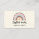 Cute teacher business card features a pretty leopard print, pink heart, hand print mash up of a beautiful modern rainbow. Add name and personized with details. This card will be perfect for teachers or substitute teachers.
