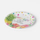 Cute Watercolor Tropical Fruit 2nd birthday Paper Plates. Design features colourful text which reads 'Two-tti Frutti', an array of juicy summer fruits, name and age.