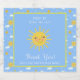 Send your baby shower guests home with this adorable and sweet blue and yellow sunshine themed custom mini sparkling wine bottle label that reads "Pop it when she pops!" The label is customizable, to edit the text click "personalize this template". This custom sparkling wine label features a hand drawn sun and cloudy sky pattern background and a hand drawn illustration of a smiling yellow sun. This makes for a fun and unique baby shower party favour and take home gift!