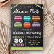 Amaze your guests with this cute birthday party invite featuring colourful macarons with modern typography on a chalkboard background. Simply add your event details on this easy-to-use template to make it a one-of-a-kind invitation. Flip the card over to reveal a colourful stripes pattern on the back of the card.