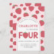 Cute Sweet Strawberry 4th Birthday Party Pink Invitation