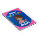 Cute kids custom notebook gift for an African American child in the swim team during the summer. Features a bright, fun pink border around the blue water and an adorable swimming black girl with pigtails. Customize with a kids name and team for your swimmer.