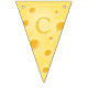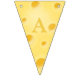 This cute set of triangular pennant flags resemble delicious wedges of Yellow Swiss Cheese. Personalize each flag with your own message to suit your special occasion or decor scheme.