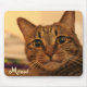 You will just fall in love with this cute tabby cat. This mousepad features a close-up photo of a lovely brown tabby kitty. The text "meow" is customizable. Great for anyone who loves cats!