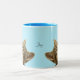 Cute Tabby Cat, Flowers & Bird on Light Blue Two-Tone Coffee Mug