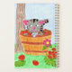 Stay organized with this cute planner with a mischievous grey and black tabby cat hiding in an apple basket . Personalize it with your name and year .