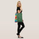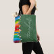 A cute personalized tote bag for teachers featuring a green chalkboard background with colourful coloured pencils and "teacher" in script. The towel can be personalized with the teacher's name and established date on the pencils.