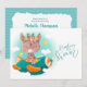 Cute Teal background with a cute giraffe flying a plane. Customize with your party details.