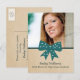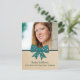 Sweet and charming Cute Bow Graduation Postcard featuring a whimsical polka dot turquoise bow and faux paper texture background. Perfect for announcing your graduate news and inviting friends and family to celebrate the accomplishment. Easy to customize, simply add a photo and your party details in the text fields provided.