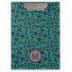 Cute Teal Floral Pattern Monogram Clipboard