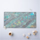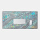Cute Teal Glitter Holographic Opal Marble Monogram Desk Mat