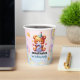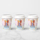 Bring joy to the party with these cute teddy bear paper cups. Decorated with a brown bear wearing a birthday hat, holding the number 2, with colorful balloons, stars, and rainbow accents. Ideal for serving drinks at a toddler’s second birthday party.