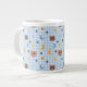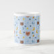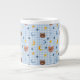 Cute Teddy Bear and Moon Pattern on Blue Gingham Large Coffee Mug