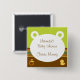 A cute and stylish button for your upcoming baby shower. "Future Mommy" is written on the button, but it is fully customizable for your own special occasion, written on a white silhouette of a teddy bears head on a background of polka dots and strips in modern colours. A dummy and rubber ducky are pictured on the lower corners of the button.