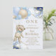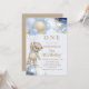 Cute Teddy Bear Balloon Abstract Blue Gold Invitation