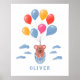 Cute Teddy Bear Blue Balloons Boy Name Poster