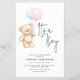This budget-friendly teddy bear baby shower invitation flyer is perfect for celebrating on a smaller scale. Printed on lightweight flyer paper without envelopes, it's an affordable way to invite guests. The design features a cute teddy bear with pastel balloons and trendy modern script. Easy to customize with your event details.