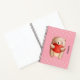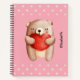 A personalized spiral notebook with a cute watercolor illustration. A brown teddy bear carrying a big red heart.