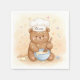 This adorable personalized paper napkin features a little teddy bear chef stirring a bowl of batter with a wooden spoon. He wears a white chef's hat with your loved one's name.