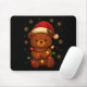 Cute Teddy Bear Christmas Tree Lights Santa Hat Fu Mouse Pad