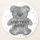 Cute Teddy Bear Custom Text Black and White Round Paper Coaster