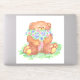 Cute Teddy Bear Holding Flowers Bouquet Watercolor Art