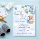 Celebrate your baby boy with this adorable baby shower invitation, featuring a cute teddy bear. This invite is perfect for a balloon-themed baby shower. Available in Spanish.