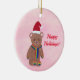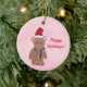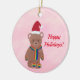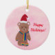 These Christmas ornaments feature my painting of a cute teddy bear wearing a Santa hat, and decorated in rainbow stripes. The background is blends of pink and Happy Holidays is written in red. The design is printed on both sides and the text can be customized with your own holiday greeting. Thank you for shopping at CherylsArt on Zazzle.