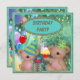 Cute teddy bears birthday party invitations for boys with whimsical cartoon bears with party hats, a gift box and a yummy cupcake. The background is beautiful and colourful with green glitter, stars and balloons with a pretty turquoise blue border edged with brown. These fun, happy, classy invites are decorated both sides. Chic, trendy, modern invitations. Children will love these adorable animal characters. Please note: All invites on Zazzle have flat printed images. Some elements purchased from Sharenmoments - Text is fully customizable to meet your needs. If you need assistance customizing your product please contact me through my store. I will be happy to help.