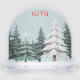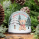 This adorable snow globe features a picture of a teddy bear in a winter wonderland with snow and trees. The greeting 'Merry Christmas' curves over the top of the image in red lettering. The reverse side also features a winter snow scene, and can be personalized with a name. Ideal as a cute festive gift.