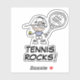 Cute tennis player cartoon custom vinyl sticker. Contour cutout sticker for player and fans. Tennis Rocks!