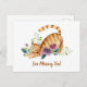 Cute orange tiger cat with purple flowers, "I'm missing you." postcard