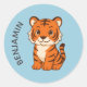 Cute Tiger Cub Custom Name Blue Classic Round Sticker