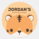 This design features cute tiger cartoon illustration with personalized name in brown modern sans serif font style on pastel orange background.