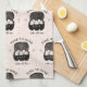 Eye catching modern, time to bake, pink and black illustrated baker's kitchen towel, for avid home bakers and home cooks.