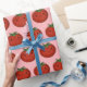 Cute cartoon style red tomato pattern on pink background. Custom gift wrapping paper rolls.