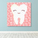 Cute Tooth on Pink Pattern - Stretched Canvas Art
