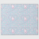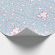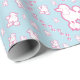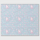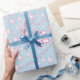 This gift wrapping paper pattern features cute Toy Poodle dogs that have been groomed and has heart-shaped paw prints. Pink and white on a light blue background. Great for kids and dog lovers.