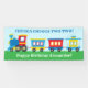 This party banner is the perfect decoration for your train birthday party. It shows a cute, cartoon train with the text "chugga chugga two two" and "Happy Birthday". Text is editable and can be used for any age.
