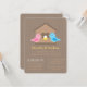 A cute couple's baby shower invitation that has a wooden birdhouse on a tree trunk. The parent birds in pink and blue are excited for their baby egg and waiting for it to hatch in the nest. Gender neutral baby shower design that keeps the guests guessing the gender. Background of woody texture pattern. Personalise easily with party details.