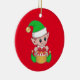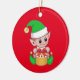 Cute trendy Christmas elf on red Ornament. Elves are believed to be earth little angels.