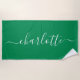Cute Trendy Kelly Green Script Name Personalized Beach Towel