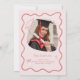 Cute Trendy Pink Wavy Border Graduation Invitation
