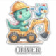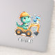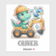 This personalized adorable sticker features a charming baby dinosaur joyfully driving a miniature construction vehicle. With its playful expression and vibrant colours, this delightful creation adds a touch of enchantment to any space, appealing to everyone, especially kids and babies.