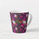 Hummingbird Pattern Pink Purple Tropical Print Latte Mug. Uplifting tropical Hummingbird print. On a deep purple background. Positive vibes. Other colours available in my store.