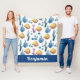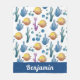 This adorable personalized tropical fish pattern fleece blanket for kids is perfect for a boys bedroom. This fun design features a white background with sweet yellow tropical fishes, blue bubbles, and coral in a trendy nautical style. Personalize the bottom of this kids fleece blanket with your child's name. Perfect boys gift idea for Christmas or birthday.