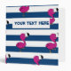 Sweet and summer design featuring cute little baby flamingo, white and navy blue stripes.