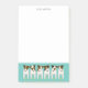 These Parson / Jack Russell Terriers Post-it® Notes for JRT lovers feature an illustrated lineup of six "Jacks" with various brown and black ear, head and body markings, each with an adorable head tilt and a tennis ball at her feet - the name and background colour, shown here in light teal, are customizable - Jack Russell Terriers pattern design © katz_d_zynes 2019