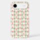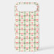 A soft and adorable pastel tulip seamless pattern featuring pink flowers arranged inside a wavy checkered grid of cream, blush, and sage green.